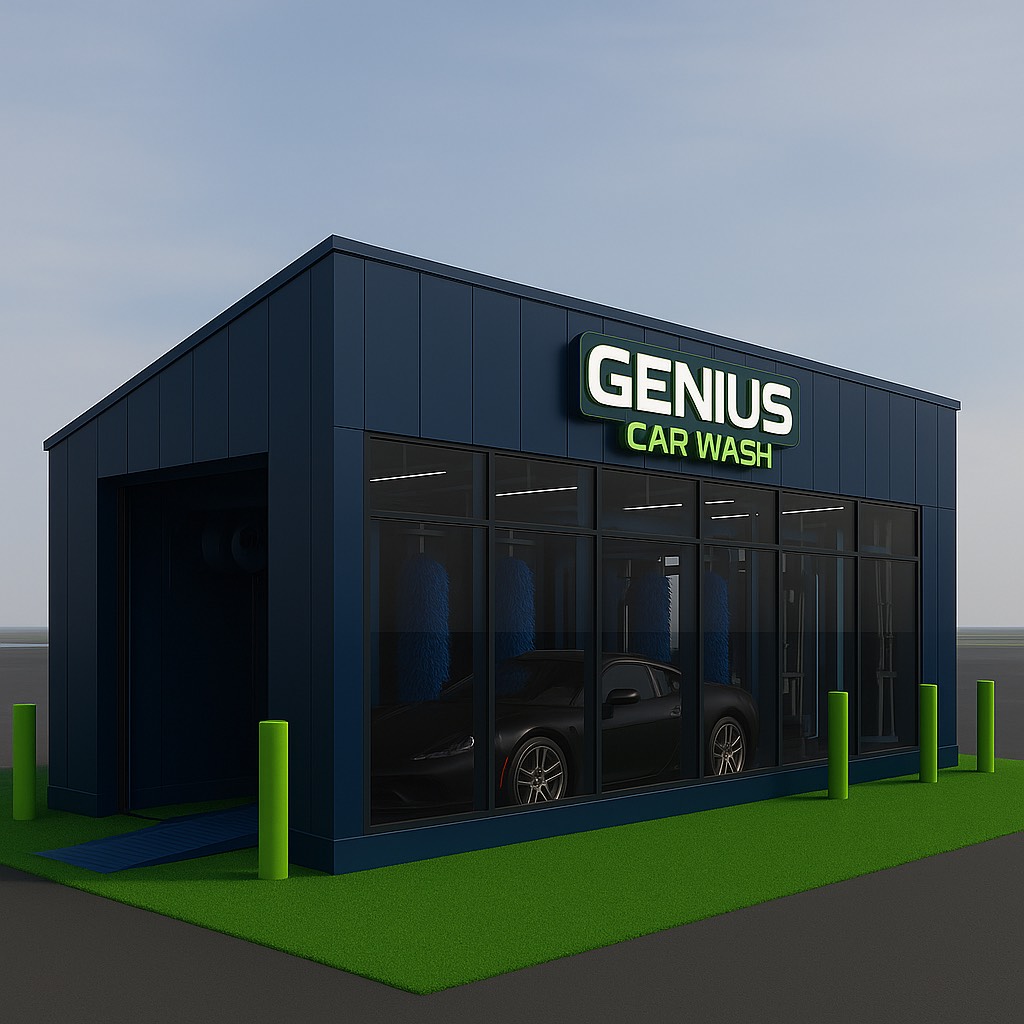 The Genius Car Wash redefines efficiency — a compact, high-performance 50-foot tunnel that delivers a full-scale clean in record time.